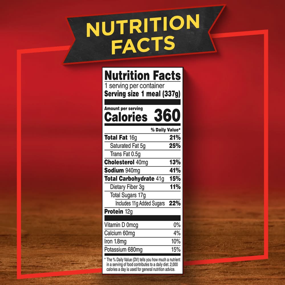 Banquet Meatloaf with Creamy Mashed Potatoes and Cinnamon Apple Dessert frozen meal brings a classic to your table in minutes. This frozen dinner features meatloaf made with chicken pork and beef, creamy mashed potatoes, sweet corn and a cinnamon apple dessert for a delicious frozen meal. Frozen meatloaf ready made meals make hearty frozen dinners on busy nights and excellent frozen lunches at the office. To prepare frozen meals, simply follow the instructions on the package to prepare frozen dinners in the oven for fresh-baked taste, or in the microwave for quick, prepared meals. Store the 11.88 ounce meatloaf frozen entrees in the freezer until you’re ready to enjoy. Proudly made in the U.S.A. for over 60 years, Banquet has been making delicious food the whole family loves. • Flavor: Chicken pork beef • Packaging: Reusable
