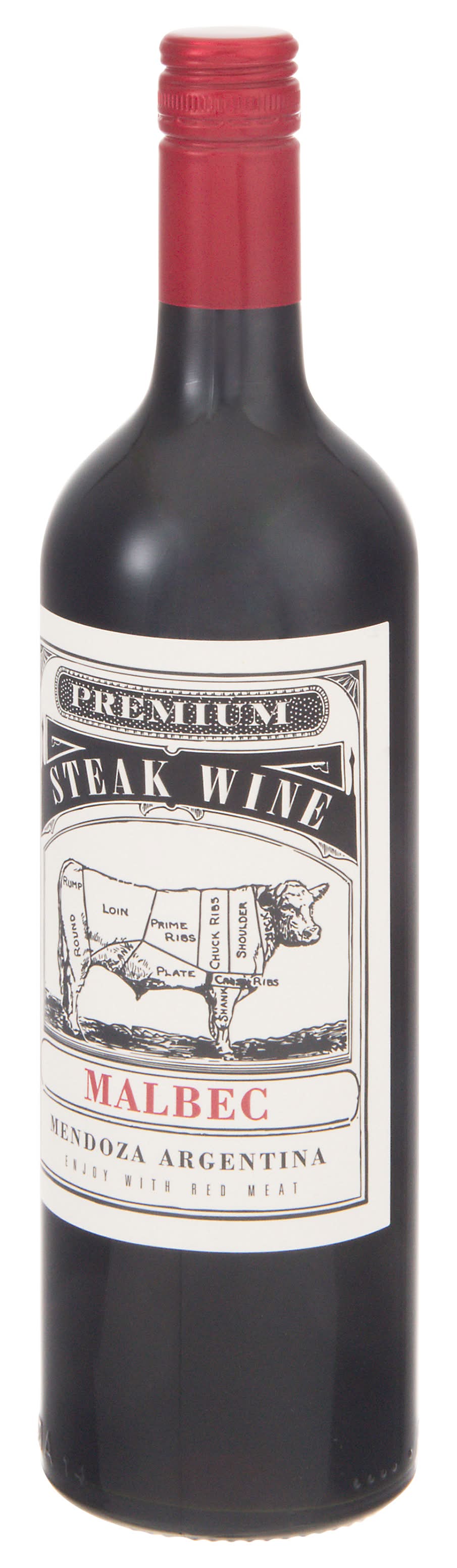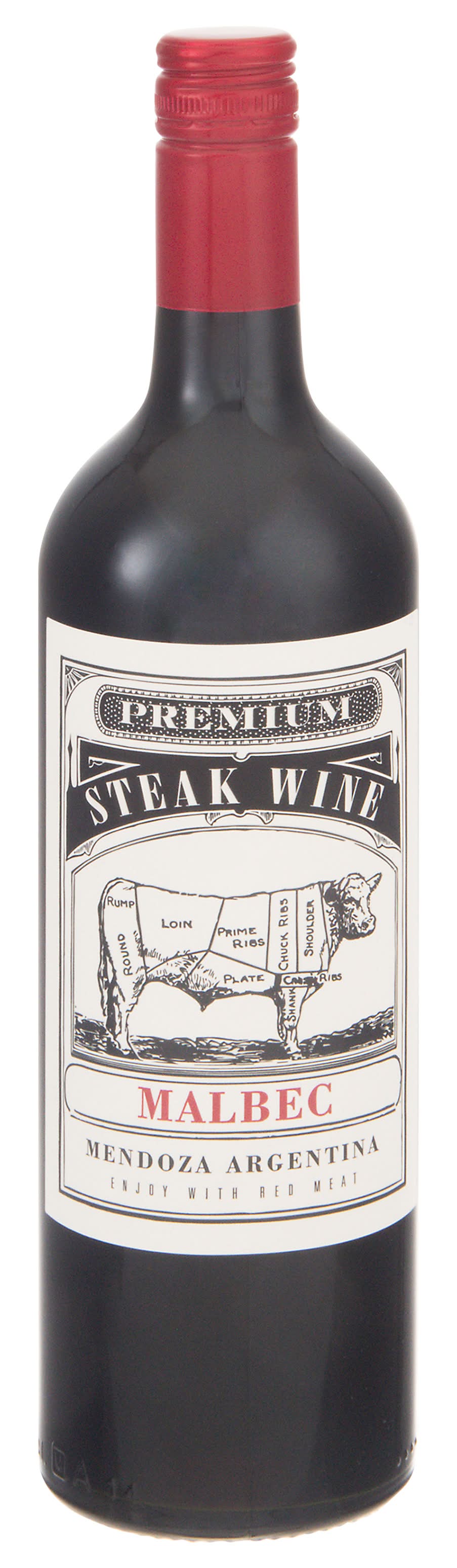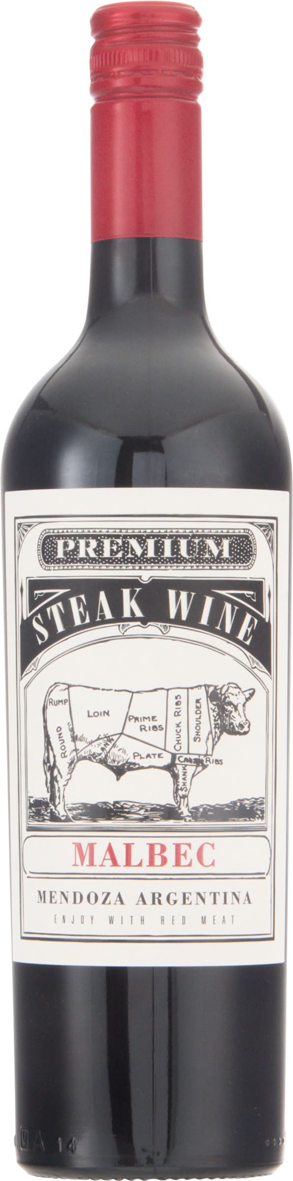 Malbec, Premium • Brand: The original steak wine • Category: Malbec • Alcohol by volume: 13.5% • Full bodied • Sweet-dry scale: dry • Tasting notes: acidic • Food pairing: pork, mushrooms • Suggested serving temperature: 65° F • Suggested glassware: standard red glass