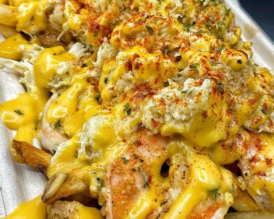 Lemon Garlic Sauce, Cheddar Cheese, with Shrimp & Blue Crab.