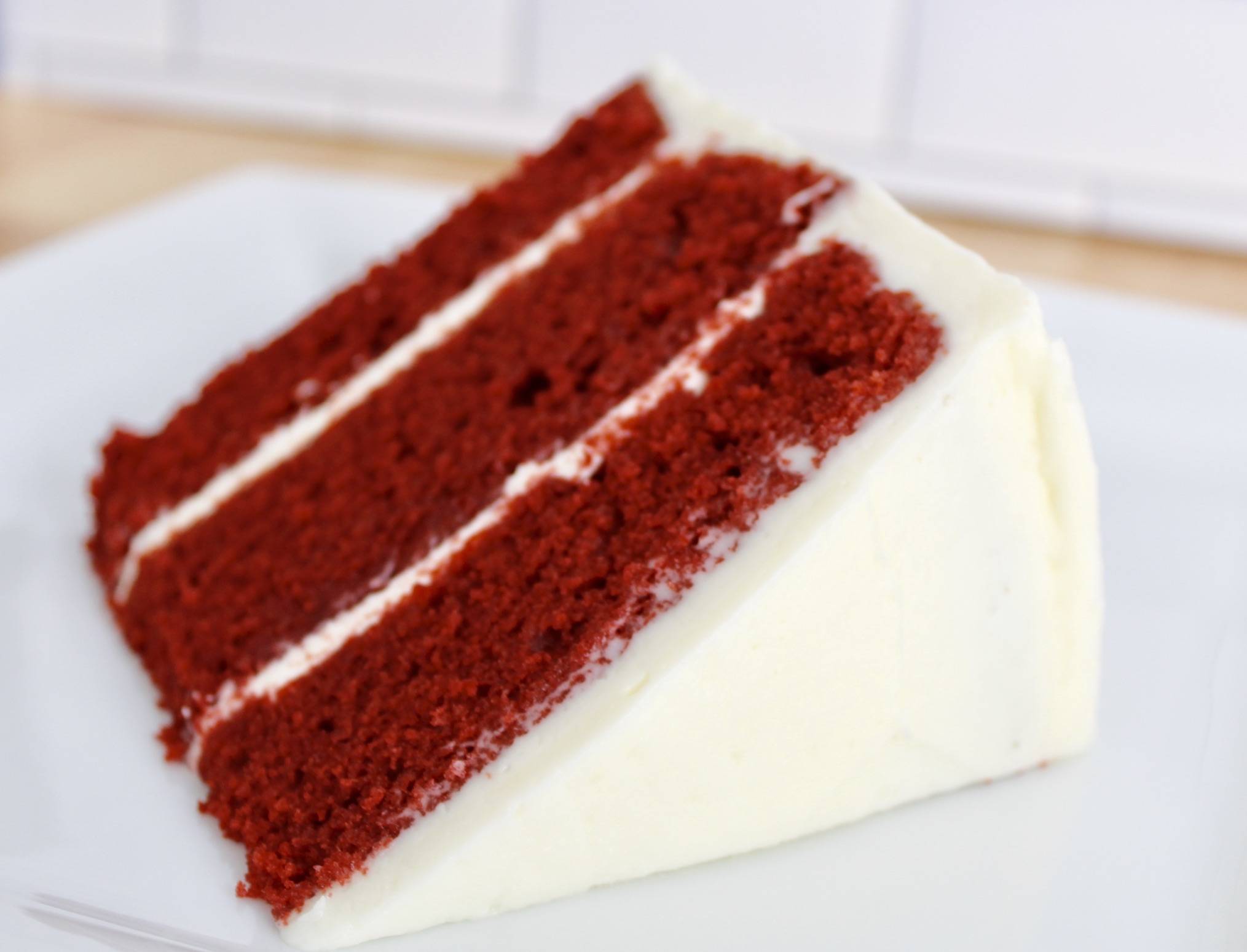 Red velvet cake with cream cheese icing -3 layers; big portion slices