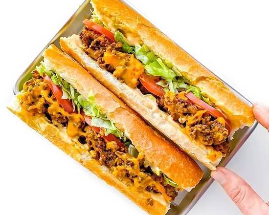 Plant-based patty chopped up with onions & peppers , melted vegan cheese , topped with fresh mixgreens , romaine lettuce , tomatoes, and vegan mayo