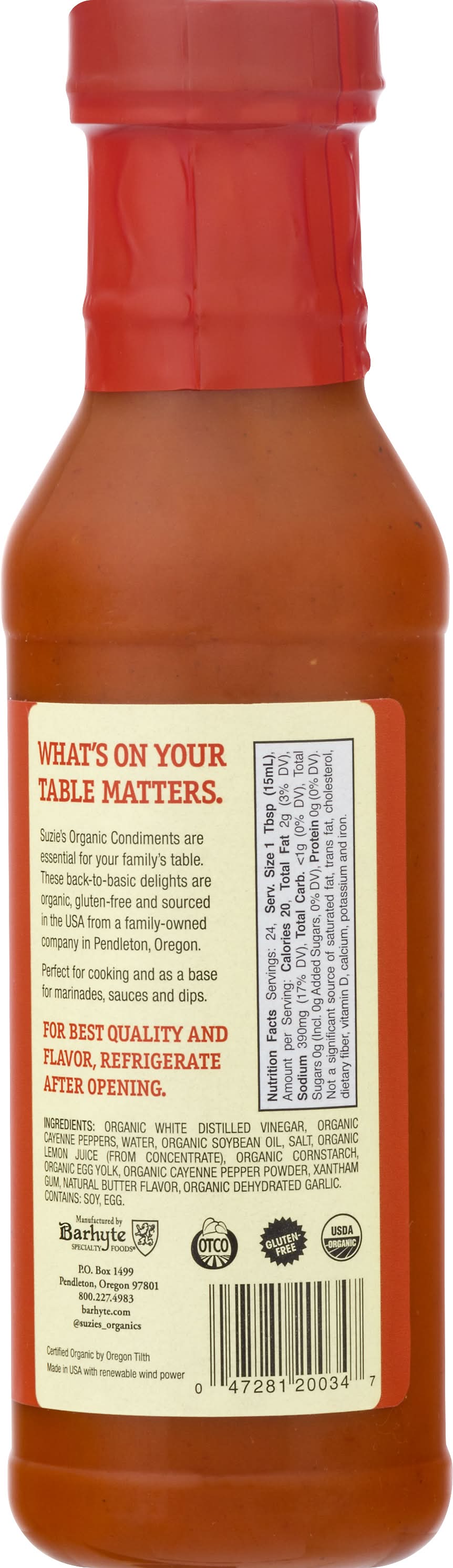 Wing Sauce, Organic • Brand: Suzie's • gluten-free, organic, GMO-free