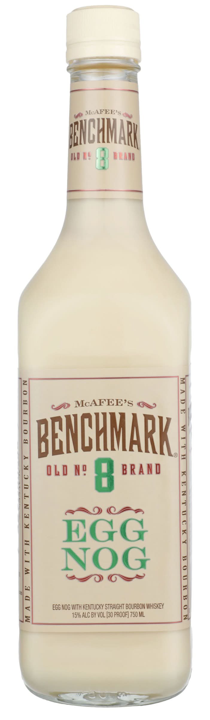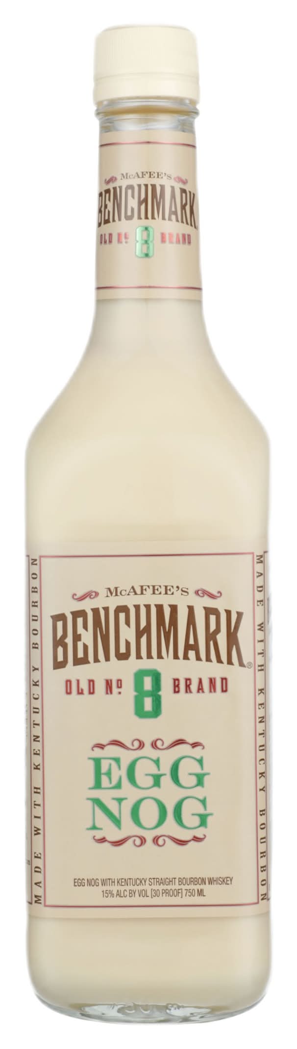 A creamy delightful egg nog blended with McAfee's Benchmark Old #8 Bourbon to give it a little kick. Smooth and delicious, this spirit is perfect for holiday drinks. Alcohol by volume: 15%