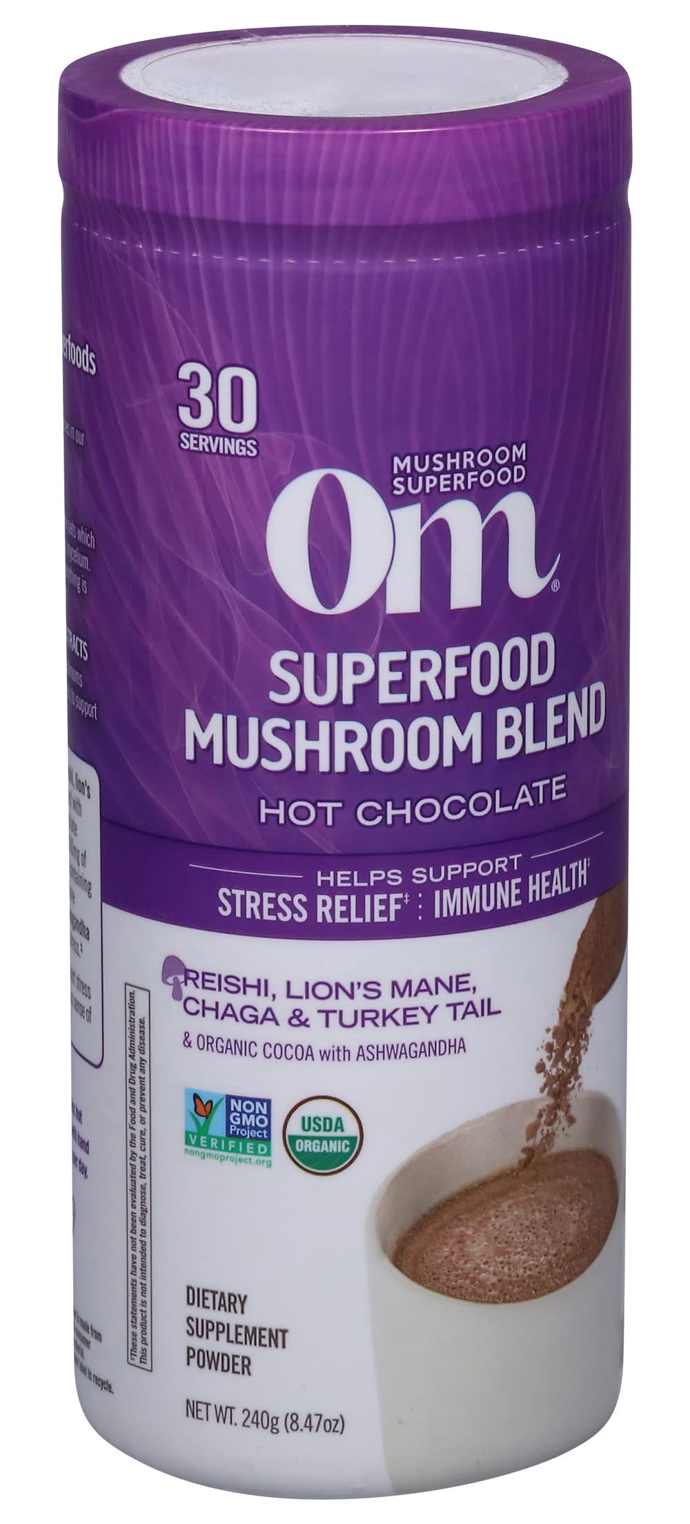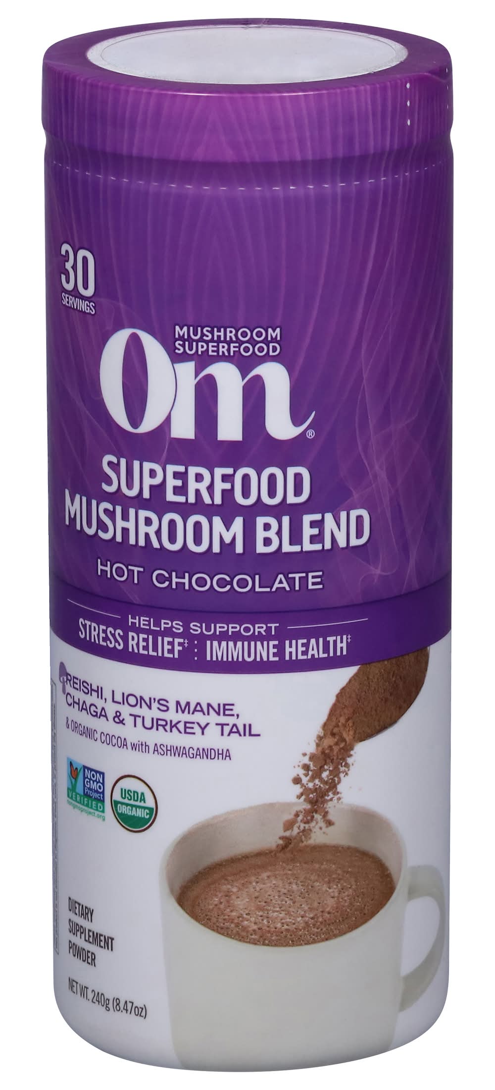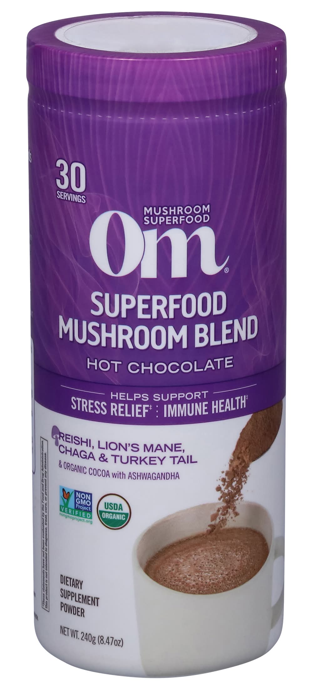 Om Mushrooms Superfood Mushroom Blend Dietary Supplement Powder, Hot Chocolate (8.4 oz)