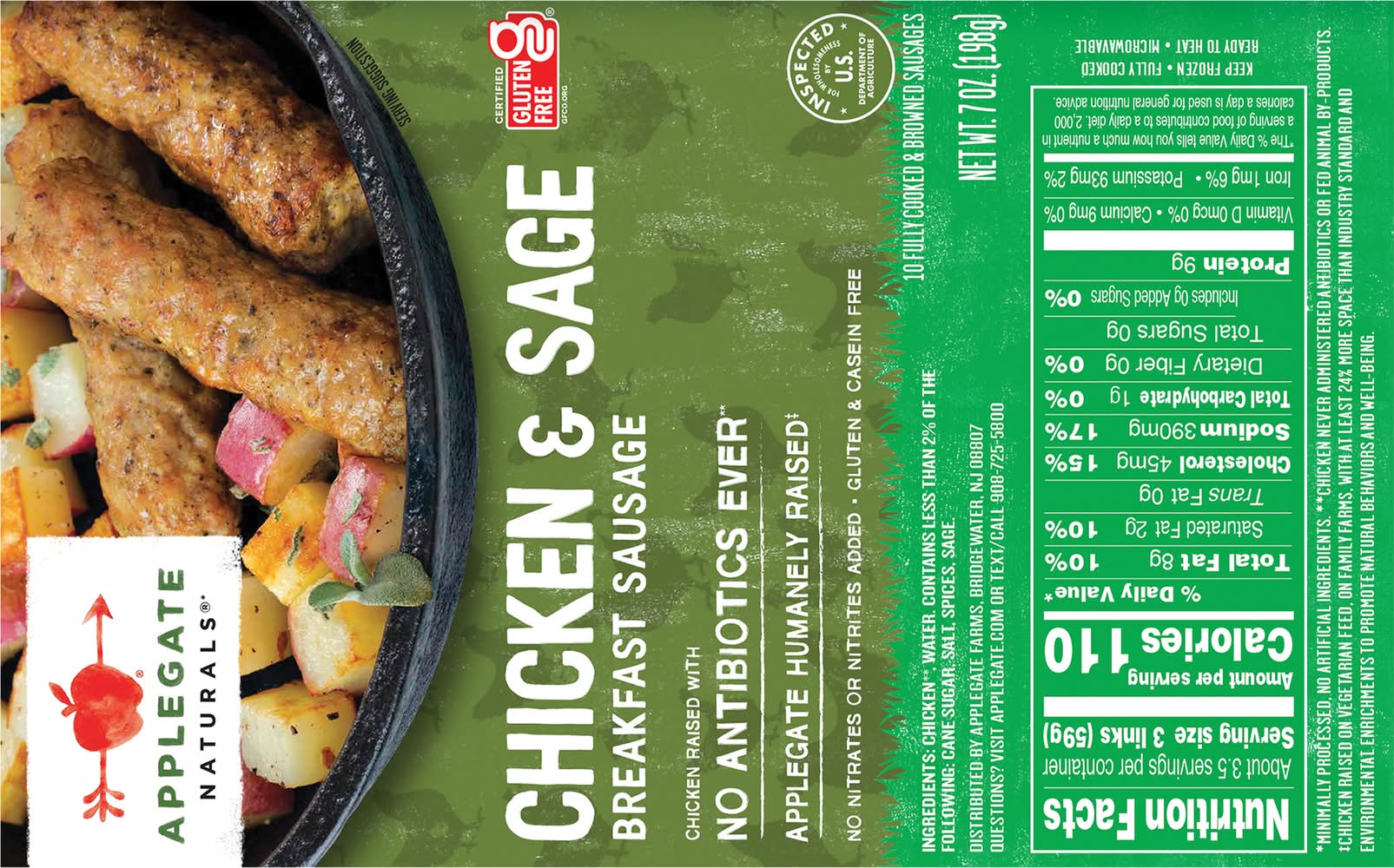 Applegate Naturals Breakfast Sausage, Chicken-Sage (7 oz, 10 ct)