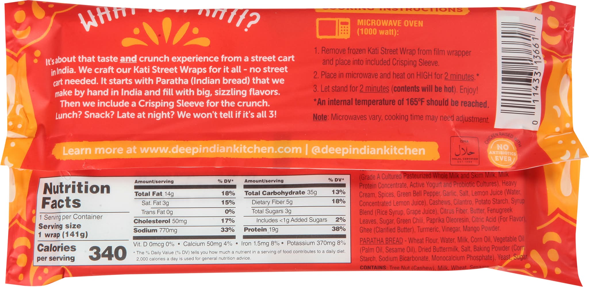 Deep Indian Kitchen Medium Spice Chicken Tikka Masala Kati Street Wrap, Medium Spicy (5 oz)