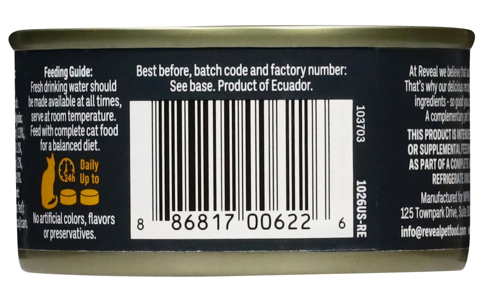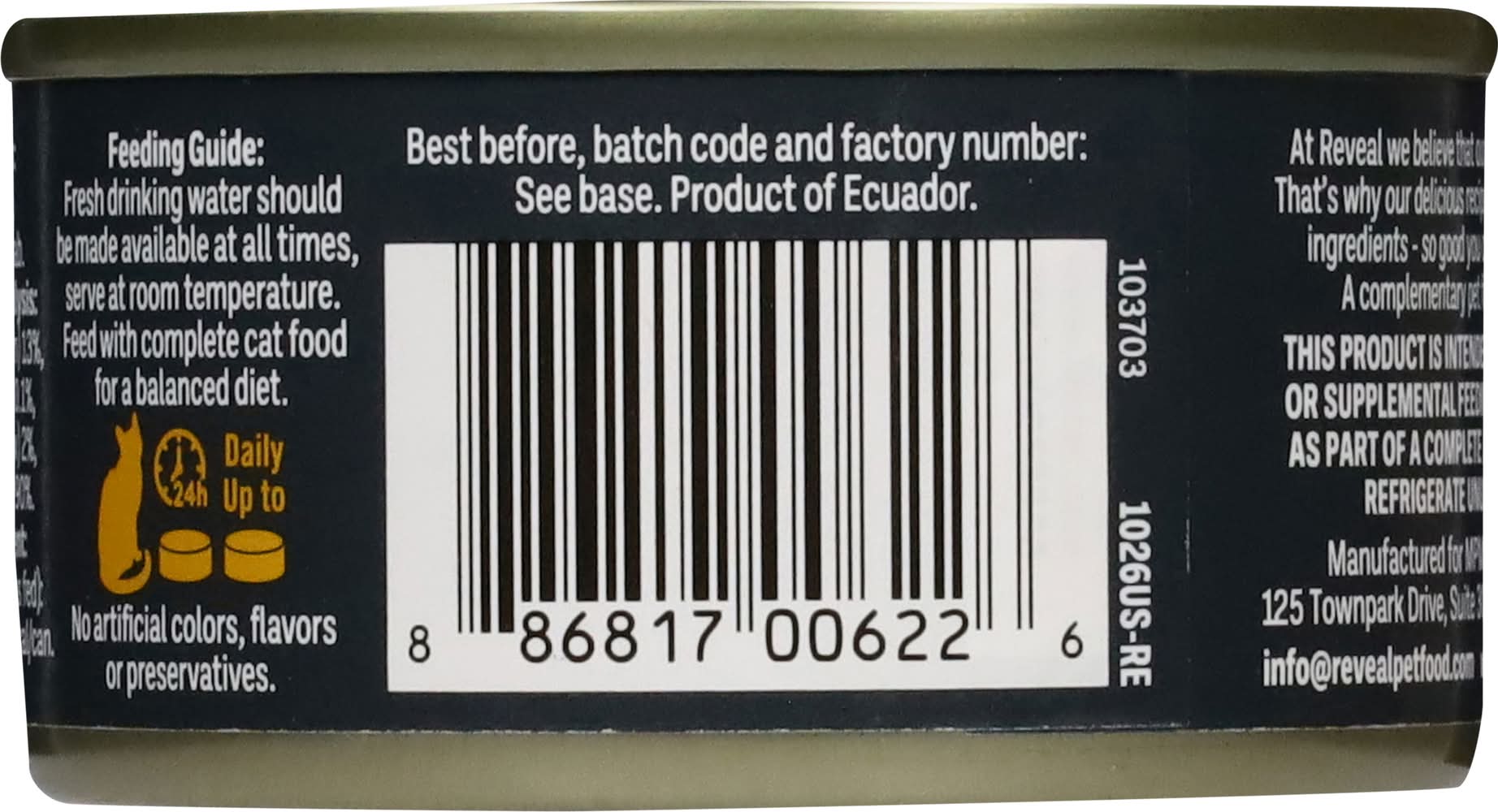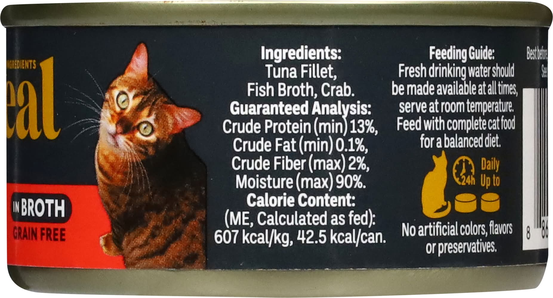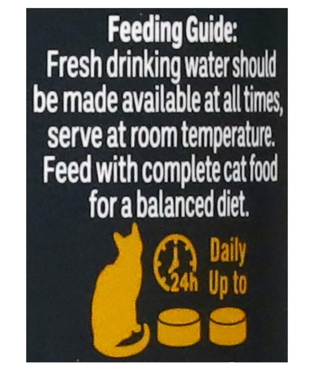 Directions for use: Suggested Daily Feeding: Fresh drinking water should be made available at all times. Serve at room temperature. Feed with other complete dry cat food for a balanced diet. Up to 5 lbs. 5 to 10 lbs. Over 10 lbs. - Directions: Suggested Daily Feeding: Fresh drinking water should be made available at all times. Serve at room temperature. Feed with other complete dry cat food for a balanced diet. Up to 5 lbs. 5 to 10 lbs. Over 10 lbs. Refrigerate unused portion. 1. Lift tab to rim. 2. Pull up and back. Best before, batch code and factory number: See base. Produced 36 months prior to best before date. Storage recommendation: Refrigerate unused portion.
