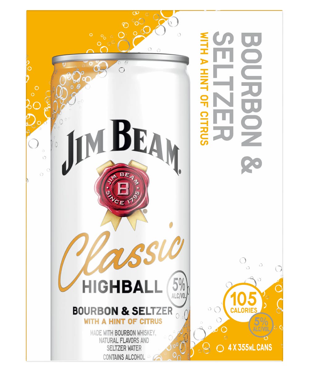 The delicious flavor of the Jim Beam Classic Highball is now available as a ready to drink cocktail. The sweet and luscious oaky flavorings of Jim Beam is balanced with zesty and light seltzer. Lemon, orange and a zest of lime add to a refreshing and sweet finish. • Pack size: 4 • Alcohol by volume: 5%