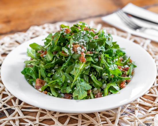 Arugula, crispy pancetta and gorgonzola. Tossed with olive oil and balsamic vinegar.