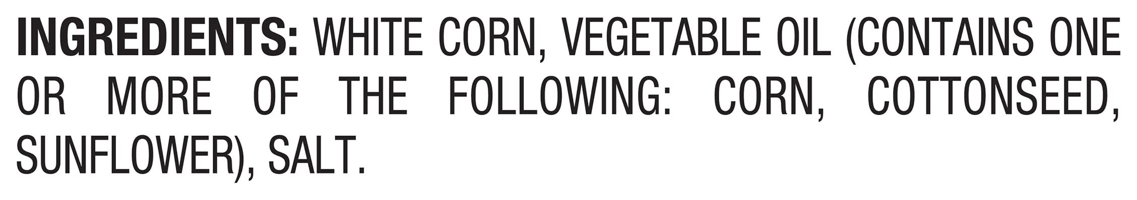 Ingredients: White Corn, Vegetable Oil (Contains One or More of the Following: Corn, Cottonseed, Sunflower), Salt