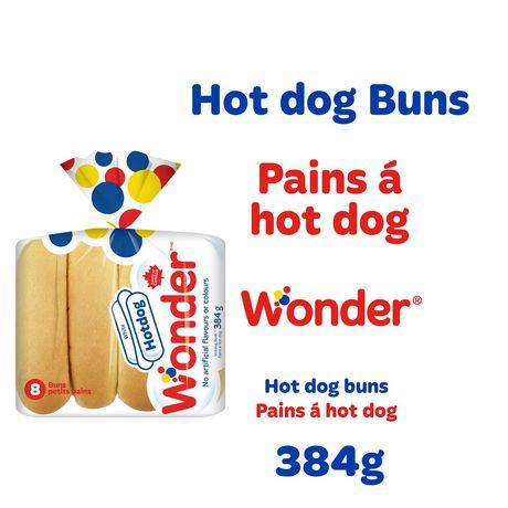 Canadian Baked & Owned™, our delicious, soft, Wonder® White Hotdog Buns never contain artificial flavours or colours. With each bun containing essential nutrients you can feel good about serving Wonder® to your entire family. Size: 44.5 G