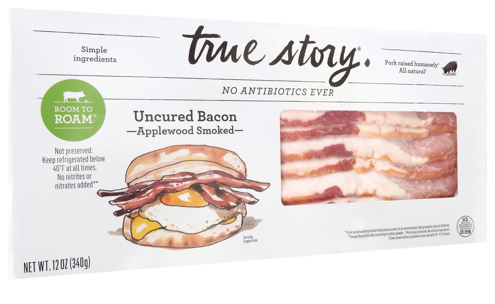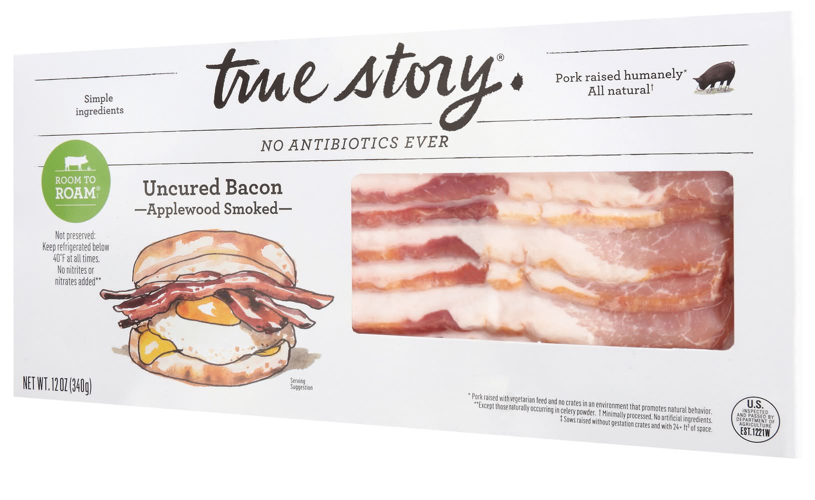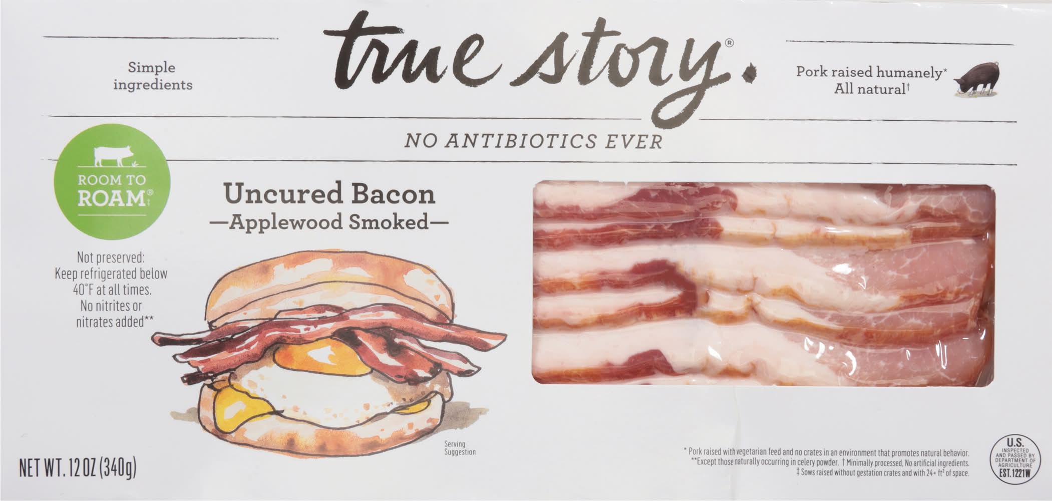 True Story Foods Uncured Bacon Applewood Smoked Pork (12 oz)