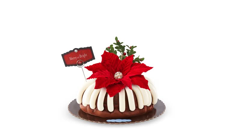 Bring joy to their world with this elegant centerpiece. The beautiful velvet poinsettia is adorned with a bright and sparkly jewel, sure to impress. Select your flavor and options. Serves approx. 18.