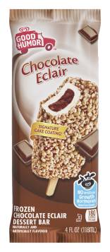 A creamy vanilla flavored frozen dessert with chocolate éclair at the core, covered with signature cake coating. Brand: Good humor
