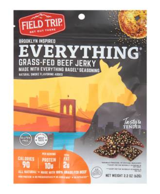 CONFIDENCE IS EVERYTHING. THERE’S ONE THING I’M CONFIDENT ABOUT: EVERYTHING. WHEN YOU LOOK AND TASTE THIS MOUTH-WATERING, IT’S HARD NOT TO BE CONFIDENT – AND DELICIOUS. JAM-PACKED WITH ONION, GARLIC, SESAME AND POPPY SEEDS ALL ON TOP OF OUR SIGNATURE JERKY – WHEN YOU’VE GOT EVERYTHING GOING ON LIKE I DO, YOU GOTTA SHOW IT OFF. AND YES, I’VE BEEN CELEBRATING MY UNMATCHED SWAGGER MY WHOLE LIFE . GUESS IT ALSO DOESN’T HURT THAT I WAS BORN IN BROOKLYN. TOTALLY ADDS TO MY EVERYTHINGNESS. GET OUT THERE. BE CONFIDENT. 100% GRASS FED BEEF · GLUTEN FREE · NO PRESERVATIVES · NO ADDED MSG · NO NITRITES • Brand: Field trip • gluten-free
