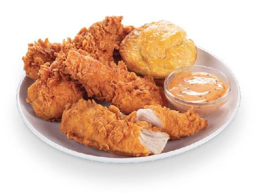 4 Piece Hand-Breaded, Mildly Cajun-Spiced, White-Meat Tenders Served With A Honey Biscuit