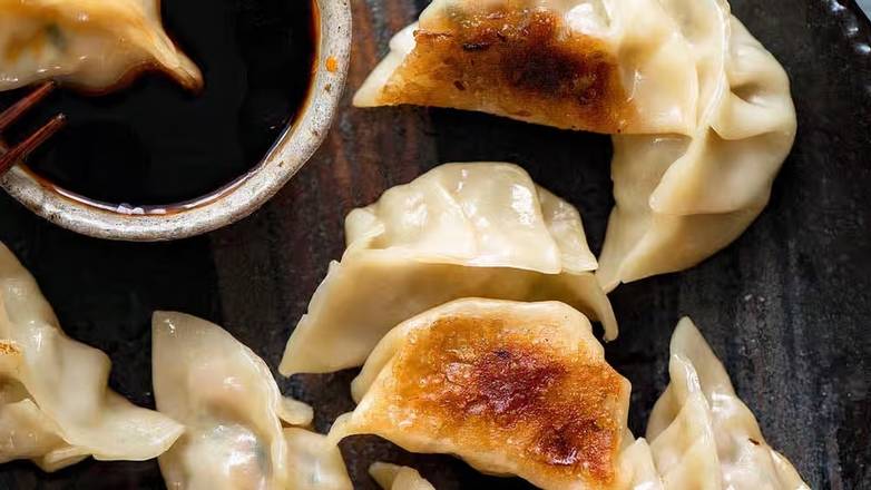 Crispy pot stickers filled with chicken, served in a set of 10.