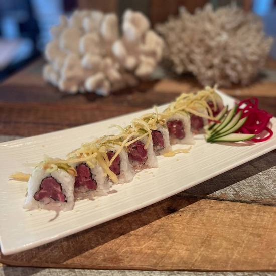 angus beef, capers, fried leeks, cornichons, spicy mustard.