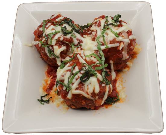 Three extra large pork and beef meatballs covered with marinara sauce.