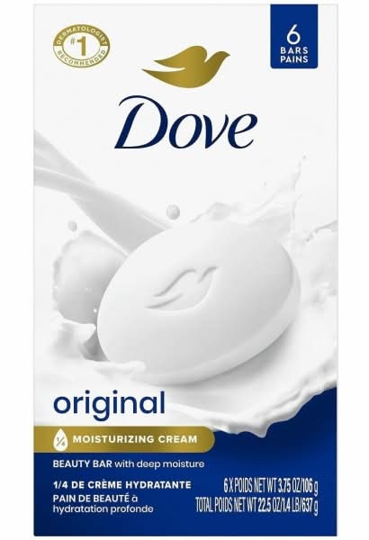 Dove Original Body Bar gently cleanses while deeply moisturizing, leaving your skin soft and smooth. Formulated with moisturizing cream, special body bar works perfectly for dry skin, providing lasting nourishment. • Pack size: 6 • Color: White