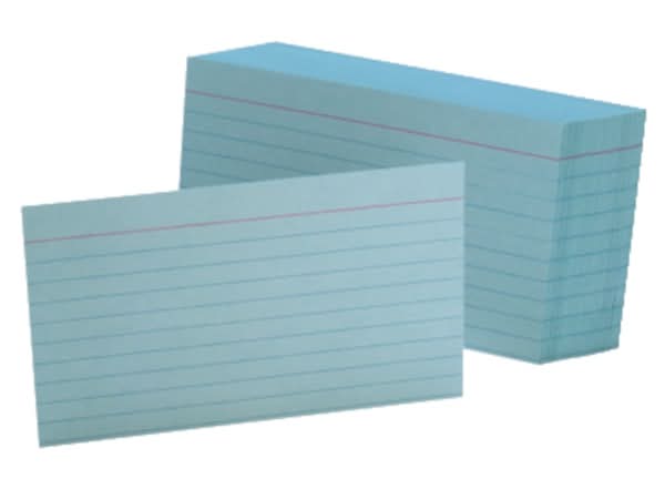 Ideal for studying, presenting and list making Quality engineering with precision cuts for a uniform size. Ruled design helps you write clearly and neatly. 3" x 5" is the perfect size for your projects and note taking. Excellent tool for studying and making quick references. • Pack size: 100 • Color: Blue
