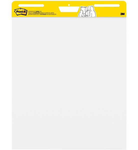 It’s an amazing feeling when your team just clicks-everyone feels a shared drive toward success. But how do you ignite that feeling on every team? Capture the spark at your next meeting with Post-it® Super Sticky Easel Pads. Adhesive backed sheets stick and re-stick to hold up to 2X longer* to most wall surfaces, unlike flip chart paper. The paper resists marker bleed through so you can capture input by writing directly on the sheet. Use with Post-it® Super Sticky Notes to organize ideas. Download the free Post-it® App to instantly capture and save your work so you can share notes with the team without recaps or delays. STICKS SECURELY AND HOLDS UP TO 2X LONGER - Easel paper can be repositioned without surface damage. No tape or tacks needed unlike standard flip chart paper. Keep agenda and ideas where everyone can see. INK BLEED-THROUGH RESISTANT PAPER - Large white premium self-stick flip chart paper that resists marker bleed-through to keep great ideas on the page, not on what's under the page. IDEAL FOR BRAINSTORMING AND MANAGING PROJECTS - Perfect for training or teaching sessions, brainstorming sessions, planning sessions, project management and agile processes, meetings and presentations. DOWNLOAD THE FREE Post-it® APP - Stop spending hours transcribing notes after a brainstorm download the free Post-it® App. Now you can instantly capture and save your work so you can share notes with your team without recaps or delays. DESIGNED TO FIT MANY EASEL STANDS - Sturdy backcard has a handle to make the easel pad portable and slots to fit most easel stands. Perfect for student activities and training sessions. USE WITH Post-it® SUPER STICKY NOTES - The large, stickable paper to capture thoughts with Post-it® Super Sticky Notes. Give ideas a place to grow. EXPLORE OPTIONS - Post-it® Super Sticky Easel Pads are also available with Grid Lines, Lines, Bright Yellow, and White Recycled Paper. EXPLORE SIZES - Post-it® Super Sticky Easel Pads also available in mor Color: White