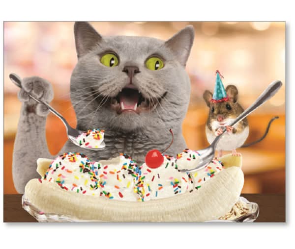 Viabella Fun Birthday Greeting Card With Envelope, Sundae Cat, 5" x 7"