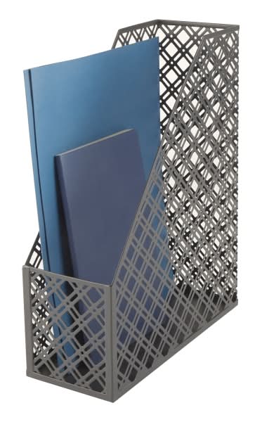 Organize files, magazines and paperwork with ease in your office thanks to the Realspace Streya Cut-Metal Magazine File Holder. The sturdy non-skid base promotes secure placement without slipping. Metal cut-out construction offers durability. Accommodates letter-size files and magazines. Non-skid base offers secure placement. Coordinate with matching items in the Realspace Streya collection (sold separately). Color: Gray