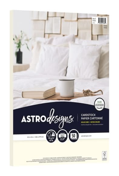 Create, score, cut and print Astrodesigns Cardstock to create 1-of-a-kind crafts. Text and graphics can be printed on the cardstock using an inkjet or laser printer, or you can write and draw by hand on the smooth surface. Durable 65 lb paper weight. Ideal for small to medium sized projects. Smooth finish for easy writing and drawing. Free of acid and lignin for long-lasting crafts. Compatible with copiers, inkjet and laser printers. Can be used with electronic cutting machines. Sheets are unbleached. Color: Off-white