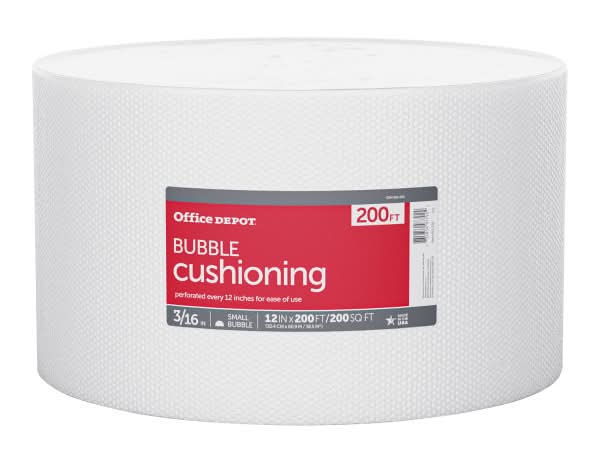 Your good reputation demands that customers receive shipments in perfect condition. Cushion items in shipping cartons with this Office Depot bubble roll, and simply tear off as much as you need. Great for most shipping, mailing and storage applications. Thick bubble roll helps protect and secure valuable items and prevent breaking. Perforated for easy use. This Office Depot bubble roll measures 3/16" thick to provide cushioned protection for items in transit. Clear bubble roll measures 12" x 200'. Color: Clear