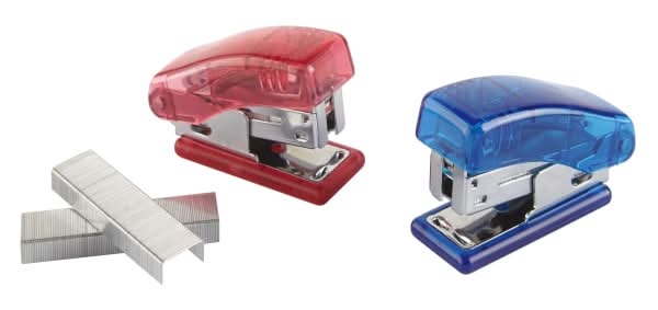 Keep the Office Depot Mini Stapler with Built-In Remover handy in your desk or bag. This mini translucent stapler is made of durable plastic and staples up to 10 sheets of 20-lb paper. Mini plastic stapler is the ideal size to tuck in your bag or keep in your drawer. Staples up to 10 sheets of 20-lb paper. Built-in staple remover adds convenience. Uses standard 26/6 size staples (1/4"). Includes 1,000 staples per pack. Backed by the manufacturer’s 1-year limited warranty. Comes in translucent blue and translucent red. Color: Assorted
