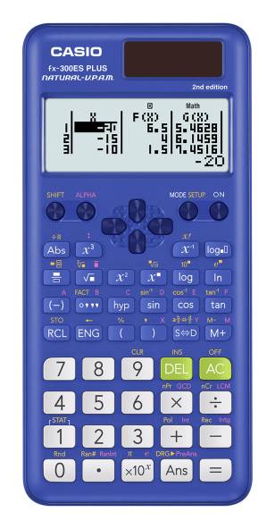Make quick computations with this Casio fx-300ES PLUS Natural-V.P.A.M. 2nd Edition Scientific Calculator, which displays results as they would be shown in a text book. Ideal for students from middle school through college, this scientific calculator works well for general math, trigonometry, statistics, algebra I/II, pre-algebra, geometry and physics. Natural Textbook Display presents fractions, derivatives, integrals, sums and other operations as they appear in math textbooks. 262 built-in math functions include basic and advanced scientific, exponential and trigonometric, fractions, regression analysis and others. Calculate statistics and regression. Includes linear regression, quadratic regression, logarithmic regression, e exponential regression, ab exponential regression, power regression and inverse regression. Prime factorization helps you locate the set of prime numbers which multiply together to get the original integer. Integer division with remainder function gives you an answer as a remainder instead of a decimal. Converts calculations to fractions or mixed numbers and back into decimal form. 2-function table of values [f(x), g(x)] mode lets you input a function and view the table of values for that function. Random number generator aids in activities. Review/edit previous entries by scrolling up the screen. Backed by the manufacturer's 1-year limited warranty. Color: Blue