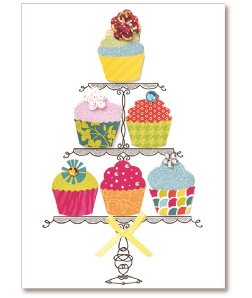 Viabella Birthday Greeting Card With Envelope, Six Cupcakes, 5" x 7"