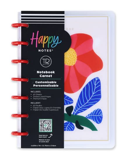 Keep track of your to-do list, jot down your big ideas and more with a Happy Planner Mini Disc Bound Notebook. It features laminated covers that protect against wear for long-lasting everyday use. Includes 60 double-sided, dotted lined pages for to-dos, daily memos and reminders. Features 3 printed dividers that can be categorized for easy organization. Dynamic 7-hole punched design. Laminated covers and mini discs offer durable use. Pop Of Joy theme features vibrant floral designs. Color: White