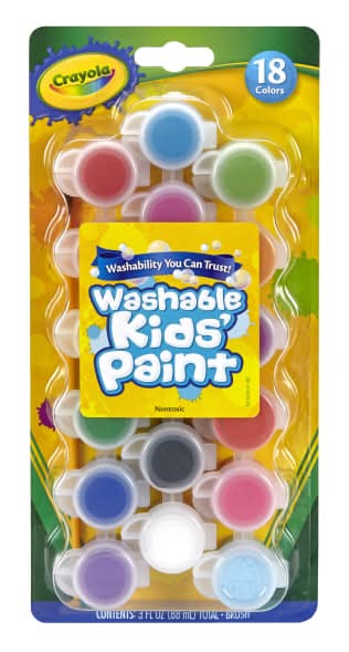 A complete kit - includes everything kids need for a summer full of different projects 18 assorted colors can be used on almost any surface. Use for projects with construction paper, poster paper and drawing paper. Easy to clean up - all paint is washable. Set includes 1 paint brush. Equals 3 fluid ounces of paint. ACMI Certified AP Nontoxic. For detailed information see www.acmiart.org. Less harsh chemicals - made with fewer harsh chemicals, or safer chemicals than typical alternatives, helping reduce your use of and exposure to substances that may be more harmful to your health and the environment. Color: Assorted