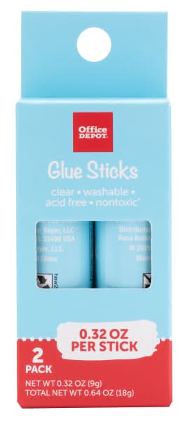 Office Depot® Brand Glue Sticks, 0.32 Oz, Clear, Pack Of 2 Glue Sticks