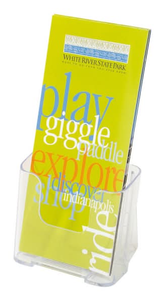 Rigid literature holder features Euro styling and is made of crystal-clear polystyrene plastic. Make your brand stand out and get noticed. Holder can be freestanding or wall mounted. Color: Clear