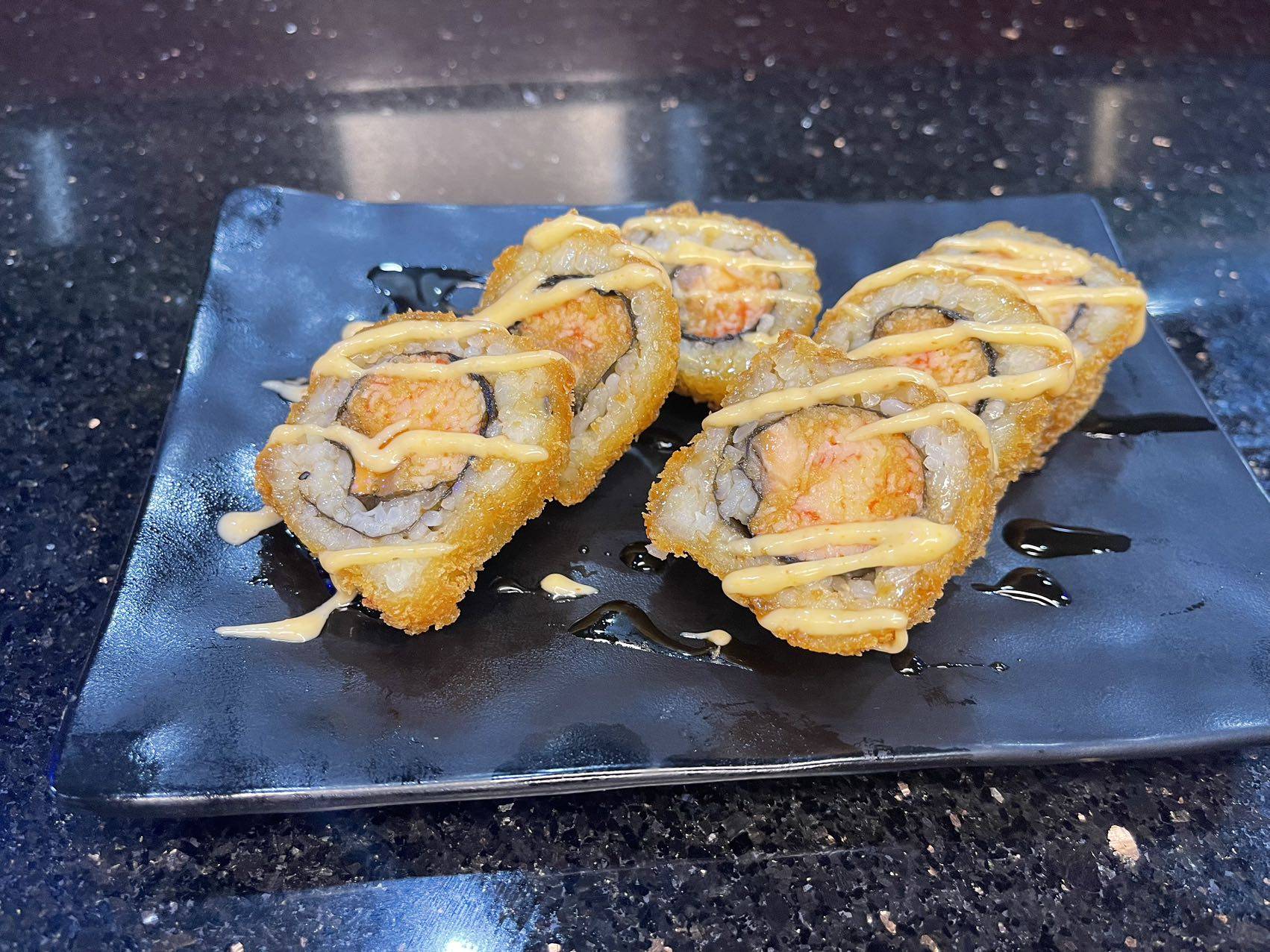 Spicy crab salad. Salmon.Bread Crumbs Deep Fried With Special Sauce