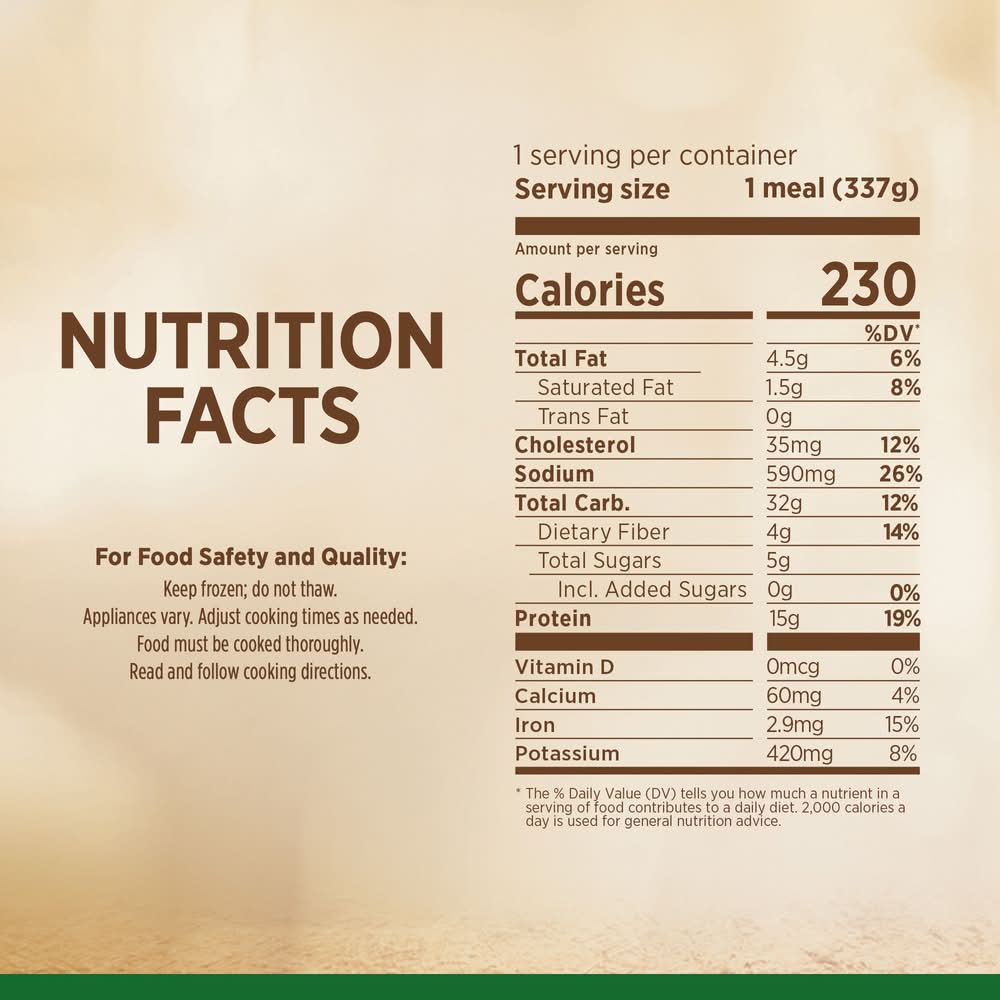 Put the taste of homemade flavor on your table with Marie Callender's Steak & Roasted Potatoes. Marie Callender's frozen dinners are convenient meals that bring back the homestyle cooking you crave. Featuring a tender beef in a savory mushroom gravy with roasted red potatoes and delicious green beans, this frozen entree offers a warm, savory taste. This frozen beef and frozen potatoes dinner is made with wholesome ingredients and no artificial flavors or colors and contains 16 grams of protein per serving. For microwave preparation, microwave this frozen dinner for 4 minutes, stir potatoes, re-cover and cook an additional 1 1/2 to 2 1/2 minutes. Let stand for 2 minutes. For conventional oven preparation, place ready made meals in an oven heated to 350 degrees and bake for 35 to 40 minutes, let stand for 2 minutes, and check that food is cooked thoroughly before eating. Whether you're feeding yourself or the whole family, Marie Callender's frozen pot pies and frozen dinners are perfect quick meals for any occasion. This 11.9 oz Marie Callender's Steak & Roasted Potatoes frozen meal should be kept in your freezer until ready to prepare. Enjoy the combination of warm, hearty and delicious ingredients in Marie Callender's frozen entrees and microwave meals for a homemade, comfort food taste. • Conagra Brands, PO Box 3534Chicago, IL, 60654 • Packaging: Reusable