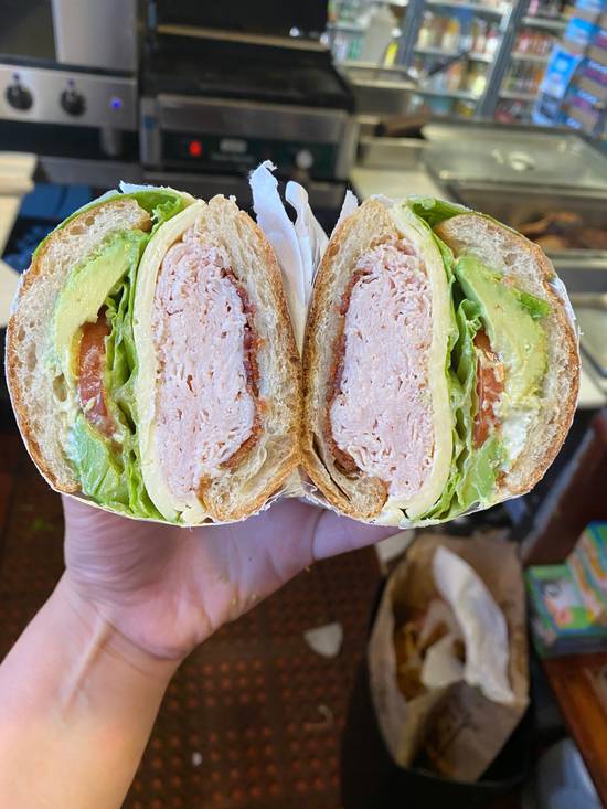 Choose Turkey or Chicken, Bacon, Lettuce, Tomato, Avocado and Mayo