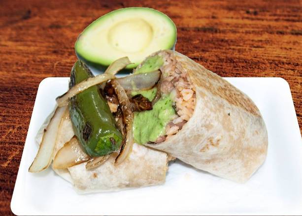 Guacamole, rice, beans, cilantro, and carne asada. .