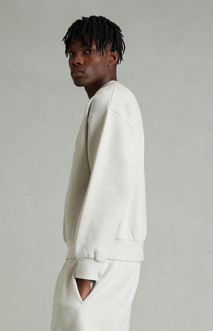The Heather Oatmeal Embossed Classic Crew Neck Sweatshirt from Fear of God ESSENTIALS offers a refined take on a core wardrobe staple. Crafted with a soft fleece lining, it features long sleeves with dropped shoulders, a crew neckline, an embossed Fear of God ESSENTIALS front logo, a silicone rubber brand label at the upper back, ribbed trimming, and the brand’s signature classic oversized fit.Solid color sweatshirtSoft fleece liningCrew necklineLong sleeves with dropped shouldersFear of God ESSENTIALS embossed front logoSilicone rubber brand label at upper backClassic oversized fitHidden side hand pocketsRibbed trimmingModel is wearing a size mediumModel Measurements: 6’4” Height, 33.5” Waist, 39” Hips, 40L Suit80% cotton, 20% polyester Hand wash, flat or line dry • Color: Heather oatmeal • Size: XS