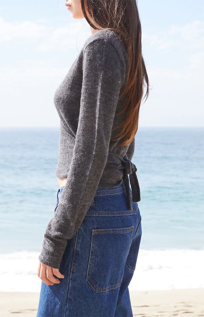 The Dark Gray Wrap Sweater from John Galt is a cozy, everyday essential with a stylish twist. Made from soft knit fabric, it features long sleeves, a V-neckline, a wrap tie front detail, a cropped length, and a relaxed fit for easy layering.Soft knit fabricLong sleevesV-necklineWrap tie front detailCropped lengthRelaxed it13.6% mohair, 16.8% wool, 39% acrylic, 30.6% polyamideHand washOne size fits mostModel measurements: 5’5” height, 30” bust, 24” waist, 31” hip • Color: Dark gray • Size: One Size • female