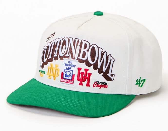 Top off your look with the Bowl Game Hitch Snapback Hat from 47 Brand. This easy-going hat features custom front embroidery, a slightly curved contrast brim, and an adjustable snapback closure.Colorblock hat Curved brim Breathable eyelets Front embroidery 47 brand embroidery Adjustable snapback • Color: White/kelly green • Size: One Size