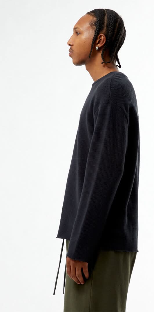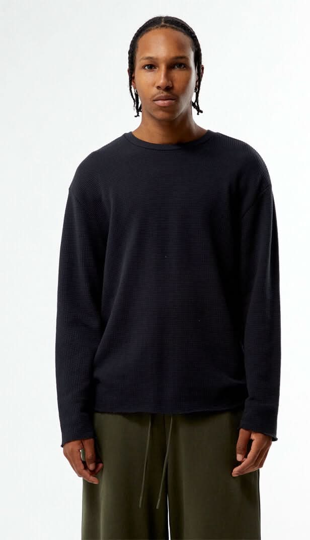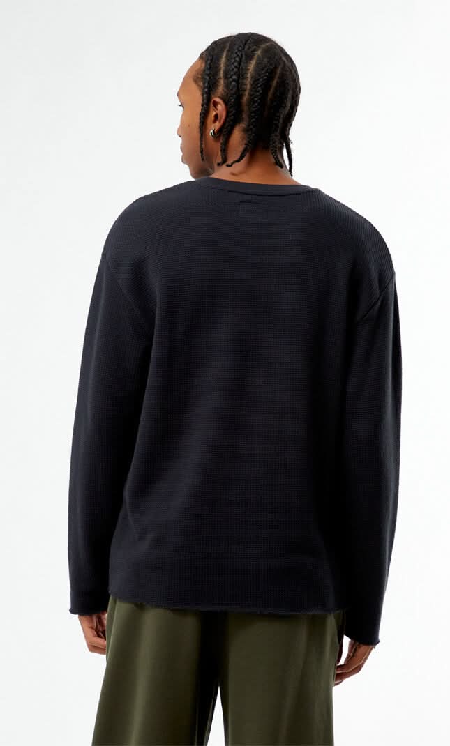 The Black Basic Waffle Knit Long Sleeve Shirt from Pacsun brings texture and style to your everyday look. Made with waffle knit fabric, this tee features a crew neckline, long sleeves, and raw trimming for cool trendy style. Solid color tee Waffle knit fabric Crew neckline Long sleeves Standard fit Raw trimming 60% Cotton, 40% Polyester Machine washable Model is wearing a size mediumModel Measurements: 6’0” Height, 33” Chest, 26” Waist • Color: Black • Size: M • male