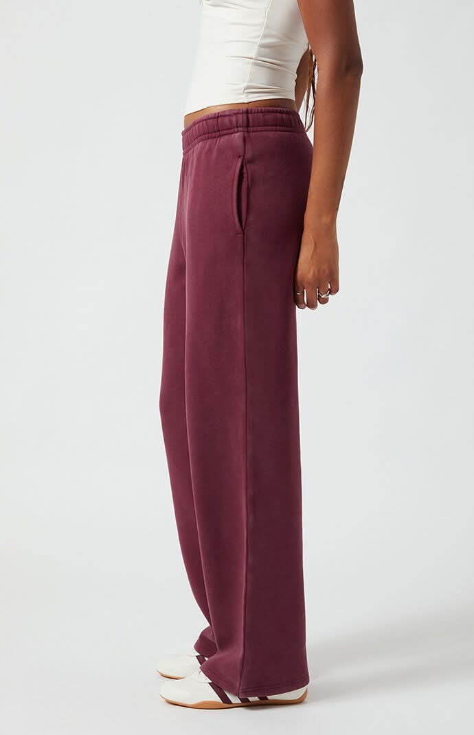 The Core Vintage Wash Baggy Sweatpants from Pacsun bring laid-back, retro vibes to your everyday look. Made with a soft fleece lining and vintage wash fabric, they feature a low-rise fit with an interior drawstring waistband, side hand pockets, a single back pocket, wide leg openings, and a relaxed baggy fit for ultimate comfort.21" leg openings32" inseam11.25" riseSolid color sweatpantsVintage wash fabricSoft fleece liningSits low on the waistInterior drawstring waistbandSide hand pocketsSingle back pocketWide leg openingsBaggy relaxed fit78% cotton, 22% polyesterMachine washableModel is wearing a size small • Color: Wine • Size: M