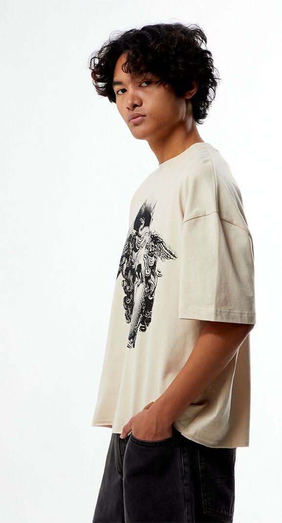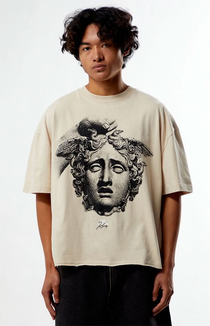 The Medusa Cropped Boxy T-Shirt from Pacsun combines comfort and edgy style with its short sleeves and classic crew neckline. Showcasing a striking graphic of Medusa on the front, this tee is designed with a cropped fit, making it a perfect addition to any casual wardrobe.Solid color teeShort sleevesRibbed crew necklineFront graphicCropped boxy fitRaw hem100% CottonMachine washableModel is wearing a size mediumModel Measurements: 6'0” Height, 36L Suit, 30” Waist, 32” Inseam • Color: Tan • Size: L • male