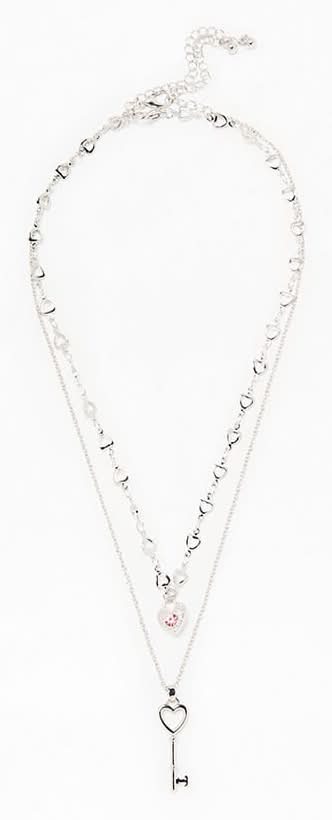 The Alice Key Layered Necklace from LA Hearts adds a dreamy touch to your jewelry lineup with its double-chain design. Featuring a delicate heart charm with a pink gem and a dainty key pendant, this silver-tone necklace brings major fairytale energy to any outfit.Includes 1 layered necklaceHeart chain and delicate dainty chainHeart and key charmsLobster clasp closure • Color: Silver • Size: One Size