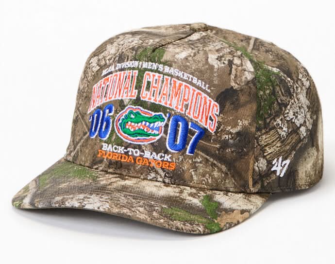 Elevate your accessories collection with the Florida Gators Camo Back To Back Hitch Snapback Hat from 47 Brand. This hat features a curved brim, breathable eyelets, front embroidery, and an all-over camo print. Camo print Breathable eyelets Curved brim Adjustable snapback closure Front embroidery 47 brand embroidery • Color: Camouflage • Size: One Size