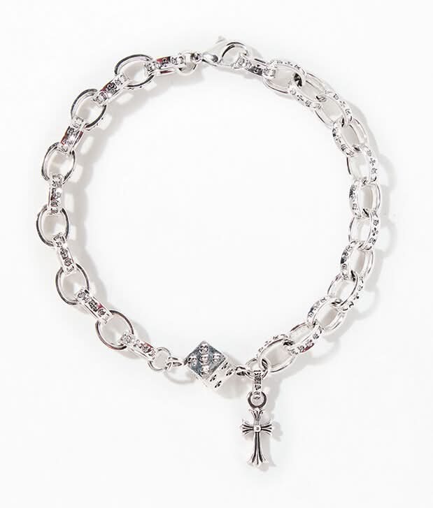 The Silver Roll The Dice Bracelet from PacSun features a silver etched link chain design adorned with various charms for a playful yet cool touch. This versatile accessory adds a pop of style and edge to any look.Silver etched link chain braceletLobster clasp closureDice & cross charms • Color: Silver • Size: One Size